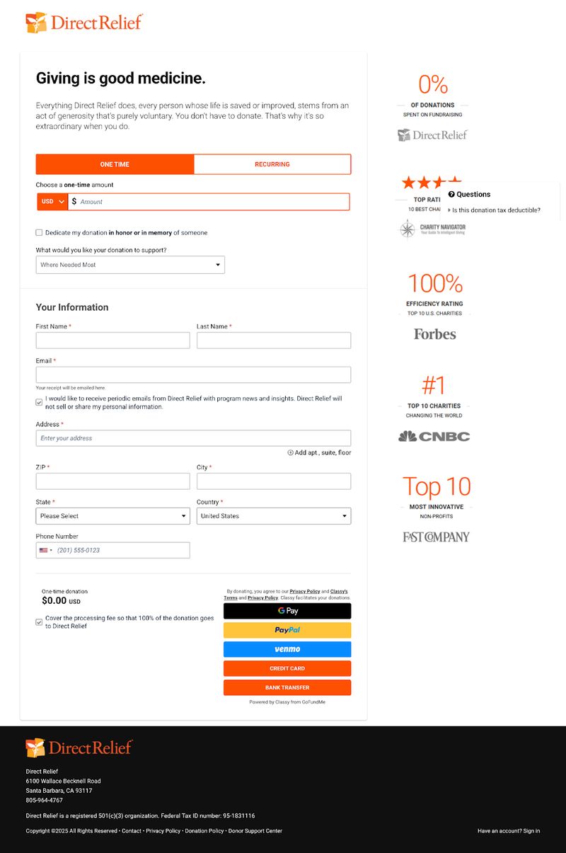 For example, on the right hand side of nonprofit Direct Relief’s donation page, you can see several trust signals and credibility markers.
